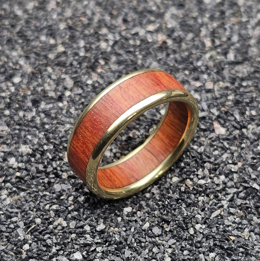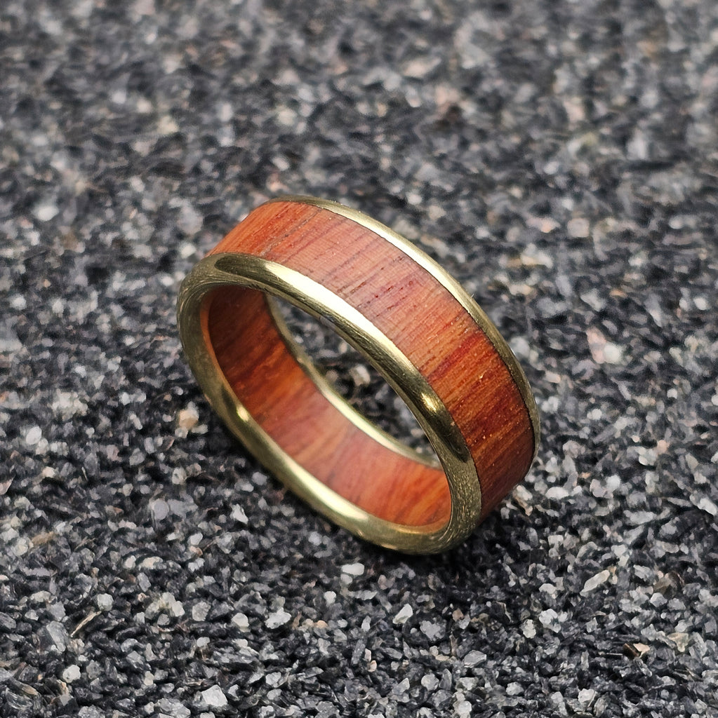 Handcrafted from Pau Rosa wood, this band features brass sides and Continuum silver rivets. A balanced design that brings together natural form and precise metalwork.