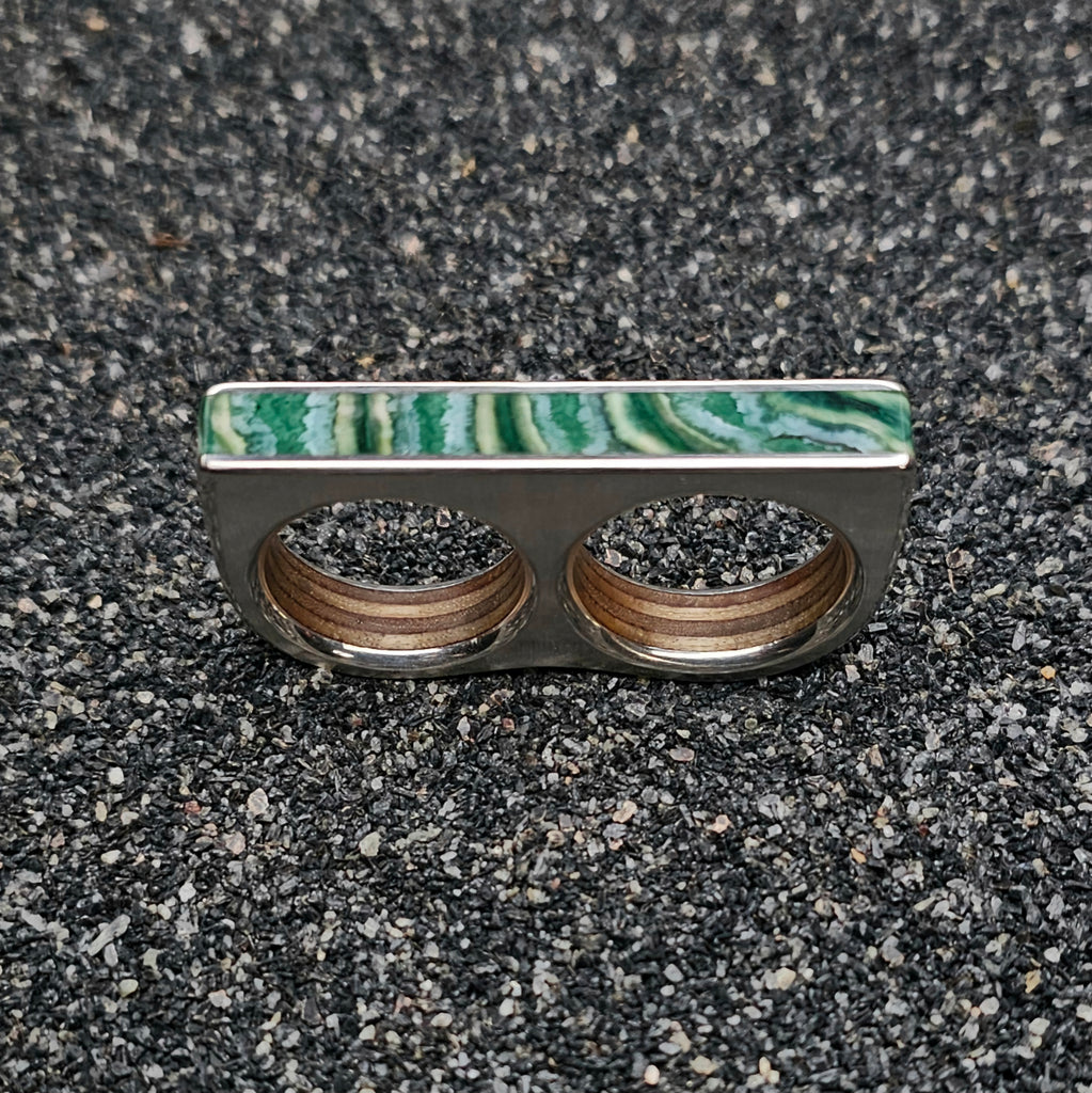 The Throne Two Finger Ring (Fossilized Green Woolly Mammoth Tooth & Continuum Silver)