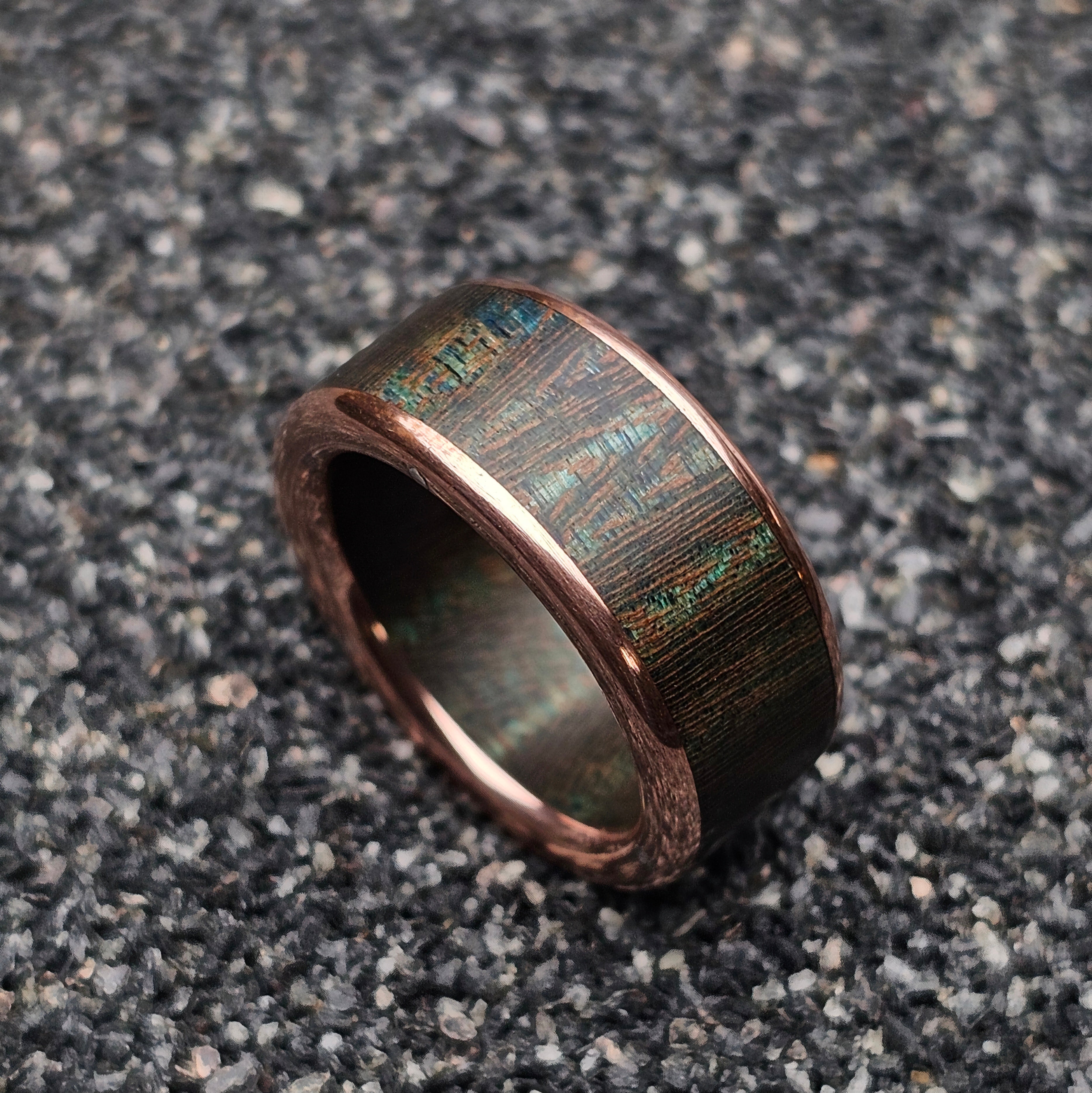 The Crown Ring (Green Tasmanian Black Wood & Copper Band)
